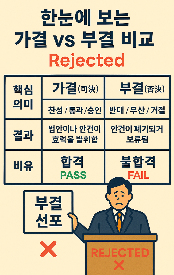 | 구분 | 가결 (可決) | 부결 (否決) |