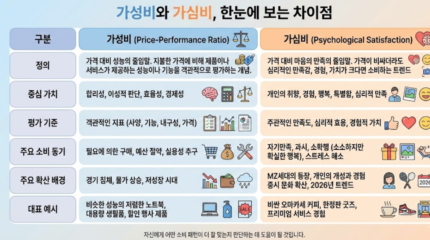 - ✅ 가심비는 2026년 개인의 행복과 경험을 중시하는 사회 트렌드와 함께 성장.