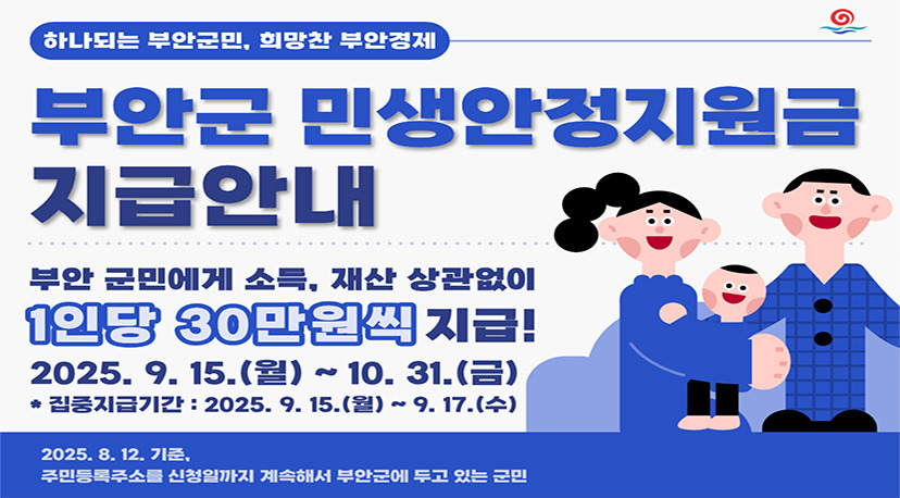 - 지급 대상: 기준일 현재 부안군에 주민등록을 둔 모든 군민