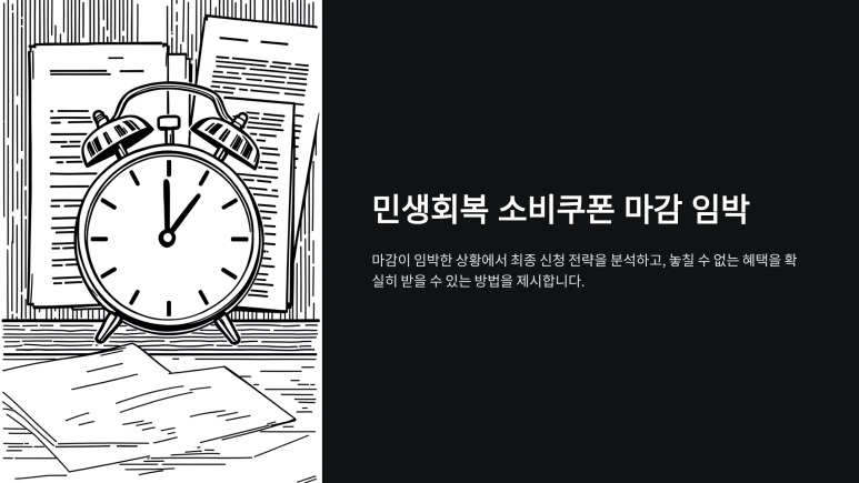 저도 예전에 다른 지원금을 신청하다가 마지막 날에 버벅거리는 시스템 때문에 애를 먹은 적이 한두 번이 아니에요. 😥 그래서 오늘은 우리 모두가 실수 없이, 그리고 최대 혜택을 받을 수 있도록 민생회복 소비쿠폰 2차의 최종 전략을 긴급하게 분석해 보았어요. 남은 기간 동안 뭘 해야 할지, 어떻게 신청해야 할지 모든 것을 알려드릴게요!
