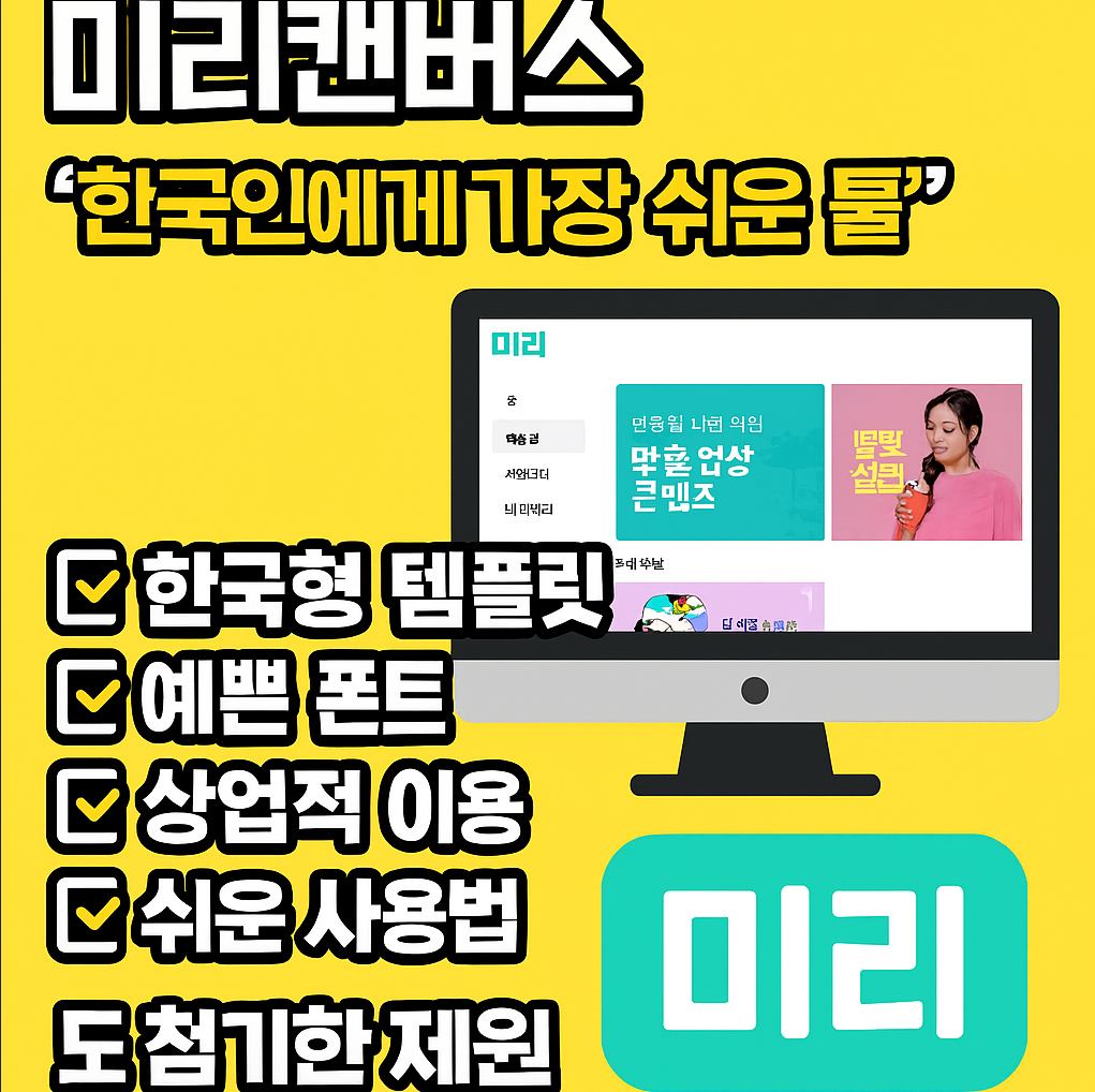 - 장점: 쉬운 사용법, 방대한 한국어 템플릿/폰트, 저작권 걱정 없는 상업적 이용