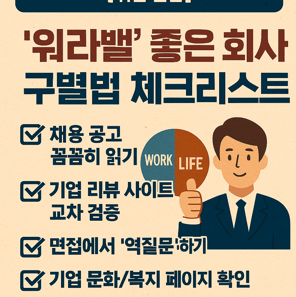 말로만 "우리는 워라밸이 좋아요~"라고 하는 회사는 많습니다. 하지만 옥석을 가려내야겠죠? 현직자로서 '진짜' 워라밸 좋은 회사를 찾는 5가지 현실적인 방법을 알려드릴게요.