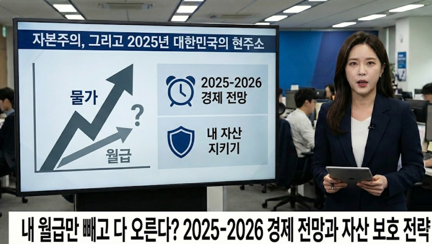 "내 월급만 빼고 다 오른다?" 자본주의의 진짜 의미와 2025-2026년 대한민국 경제 전망을 명쾌하게 정리해 드립니다. 불안한 경제 흐름 속에서 내 자산을 지키는 인사이트를 확인하세요!