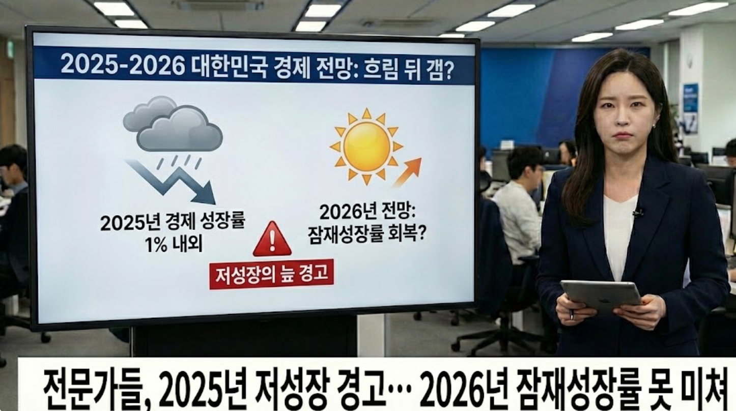 많은 경제 연구소들이 2025년 한국 경제 성장률을 1.0% 내외의 낮은 수준으로 보고 있습니다. 이는 잠재성장률(약 2.0%)에도 못 미치는 수치로, 사실상 '저성장의 늪'에 빠졌다는 경고음이 들립니다.