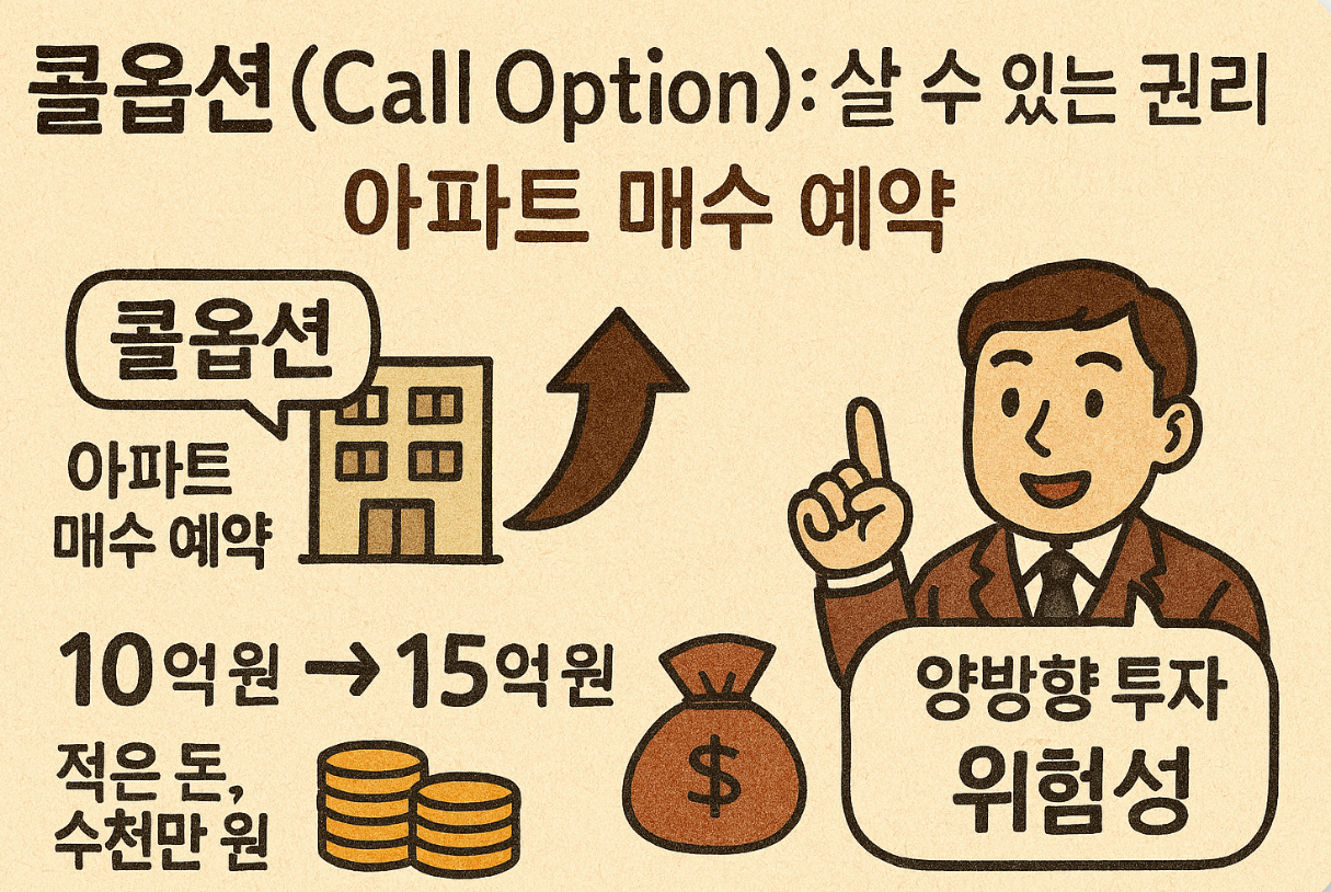 1. 콜옵션 (Call Option): 살 수 있는 권리 (아파트 매수 예약)