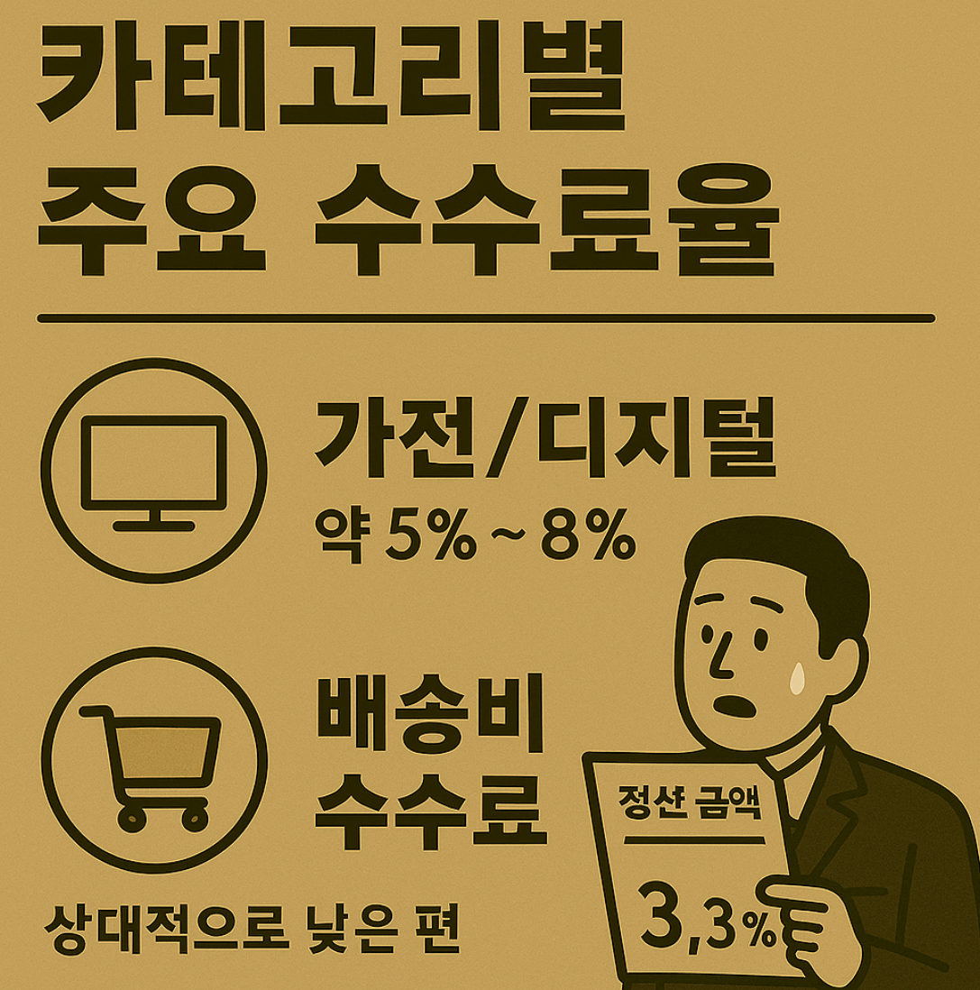 - 카테고리 수수료: 약 4% ~ 10.9% (품목별 상이)
