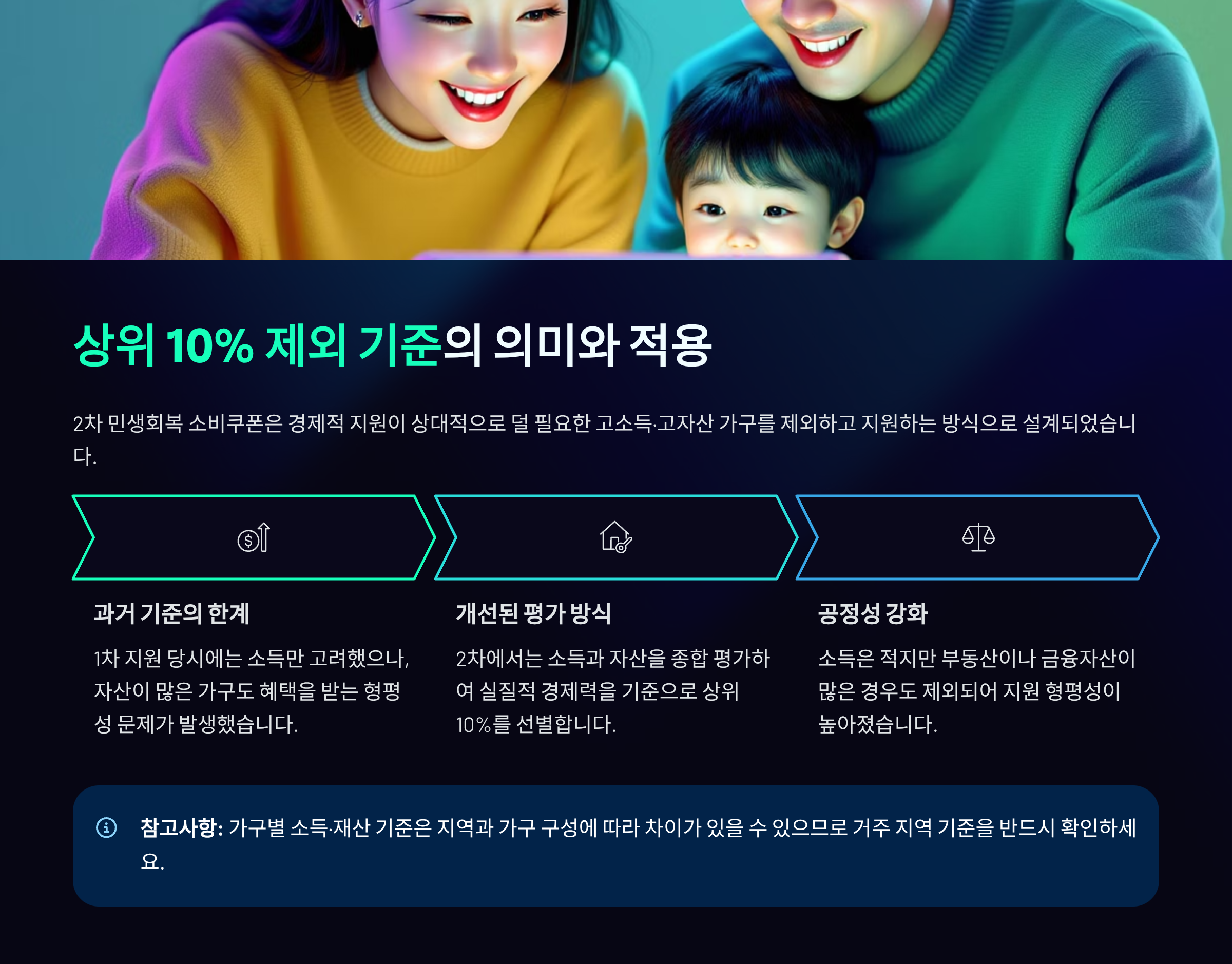 - 맞벌이 가구: 부부 합산 소득이 높더라도, 가구원 수를 한 명 더 추가하여 소득 기준을 보정해주는 방식이 유력하게 논의되고 있습니다.