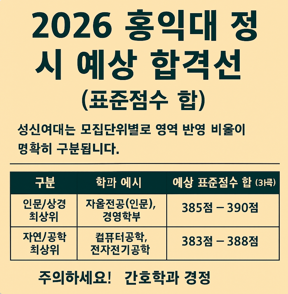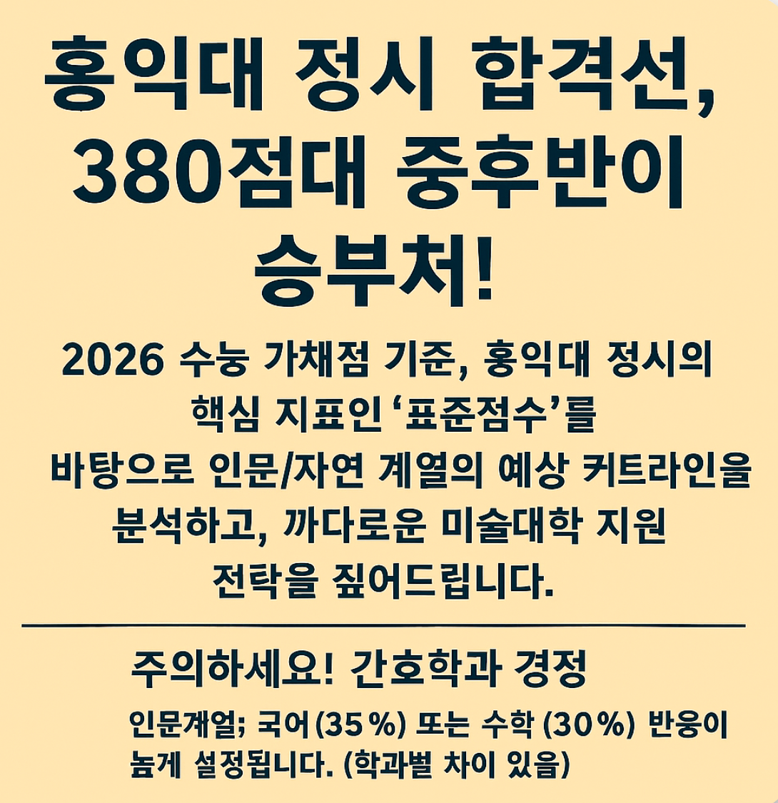 1. 2026 홍익대 정시 예상 합격선 (표준점수 합)