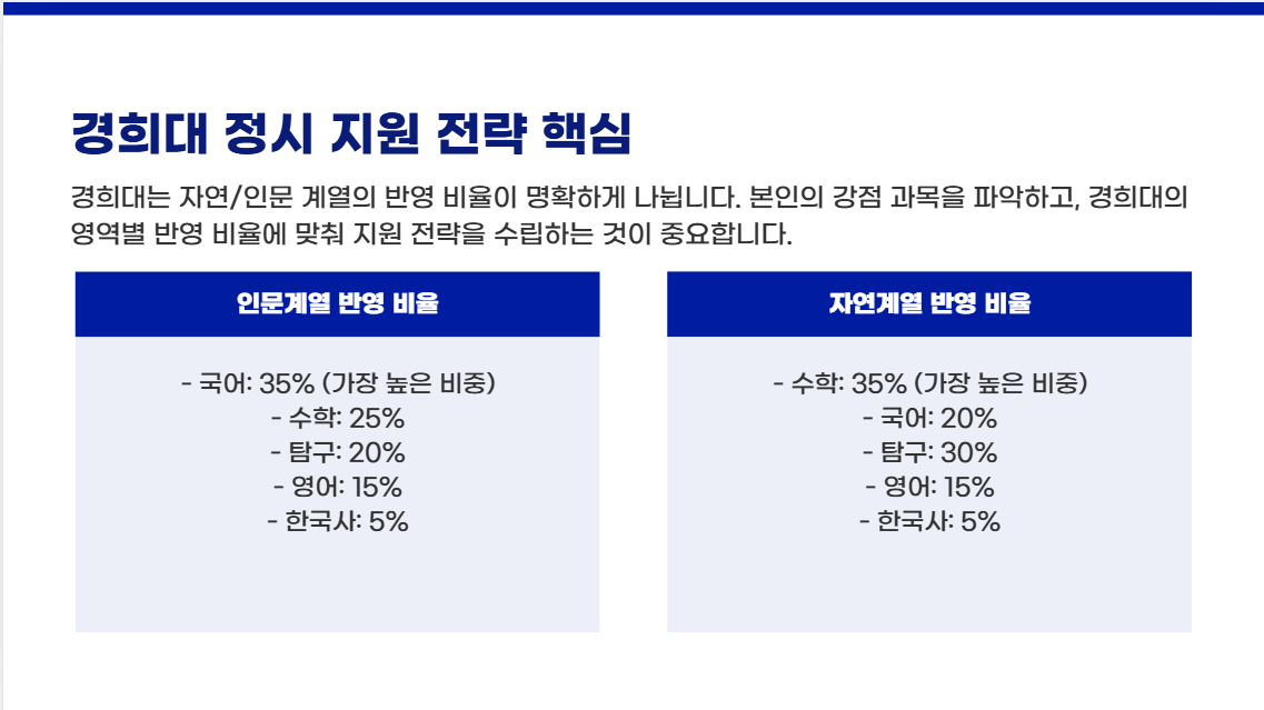 2. 경희대 정시 지원 전략 핵심 (영역별 비중)