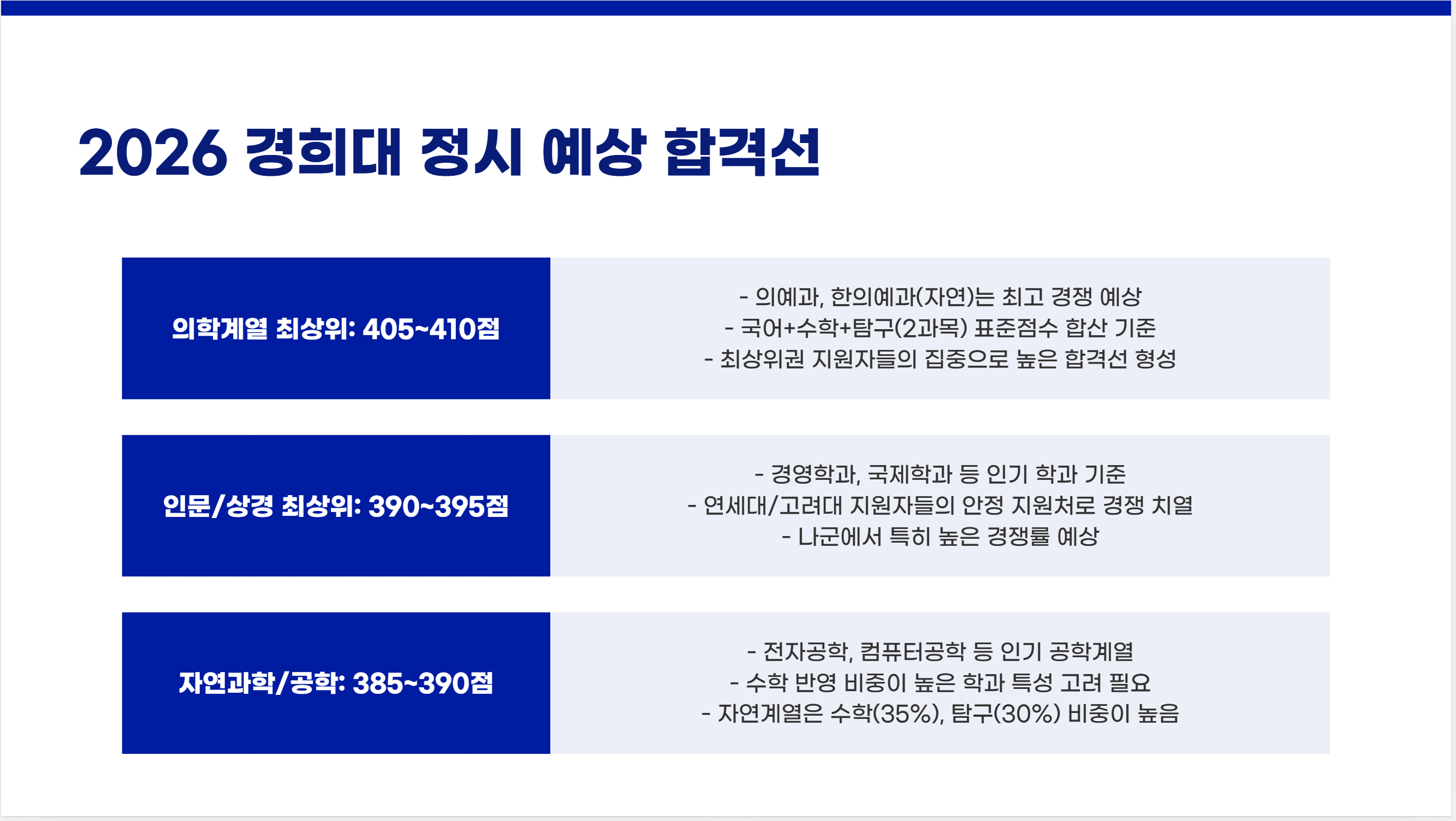 1. 2026 경희대 정시 예상 합격선 (표준점수 합)