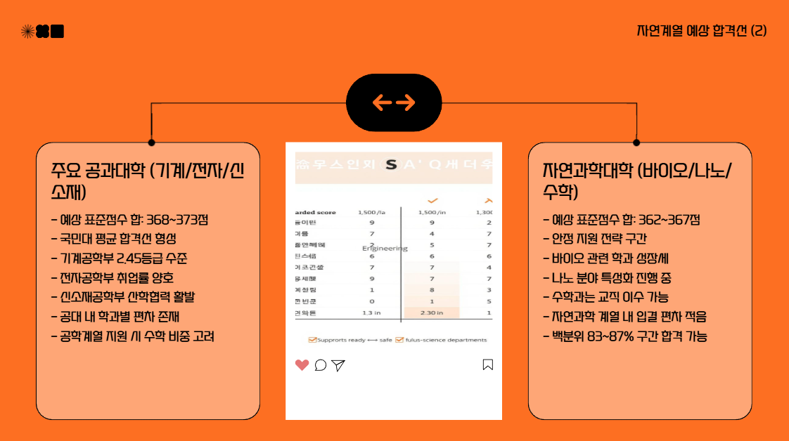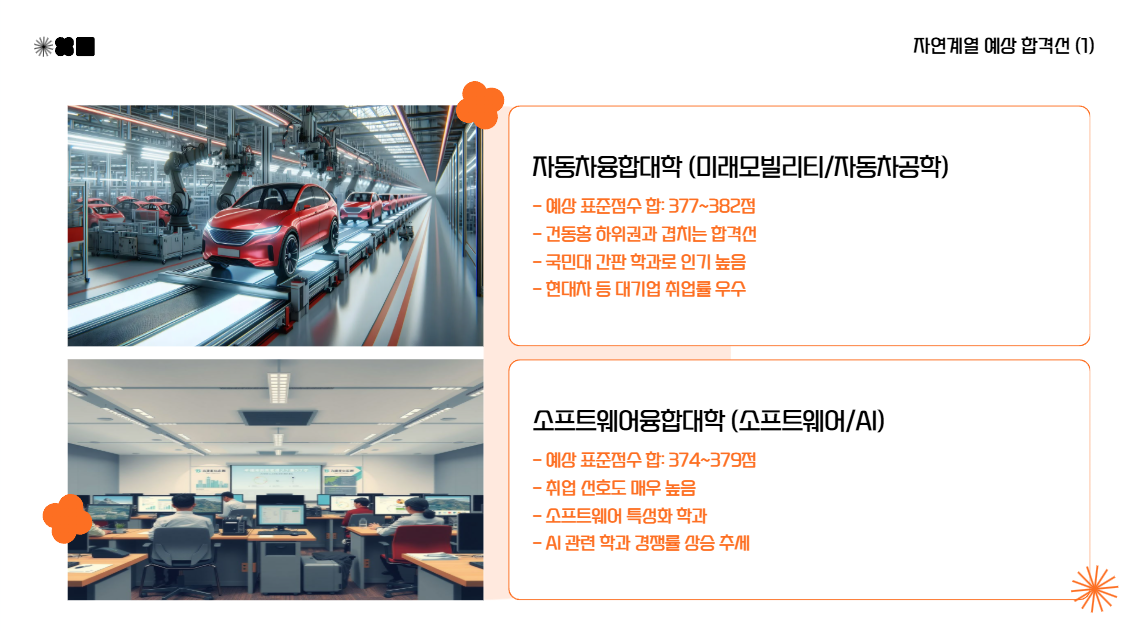 2. 자연계열 예상 합격선 (자동차/SW 강세)