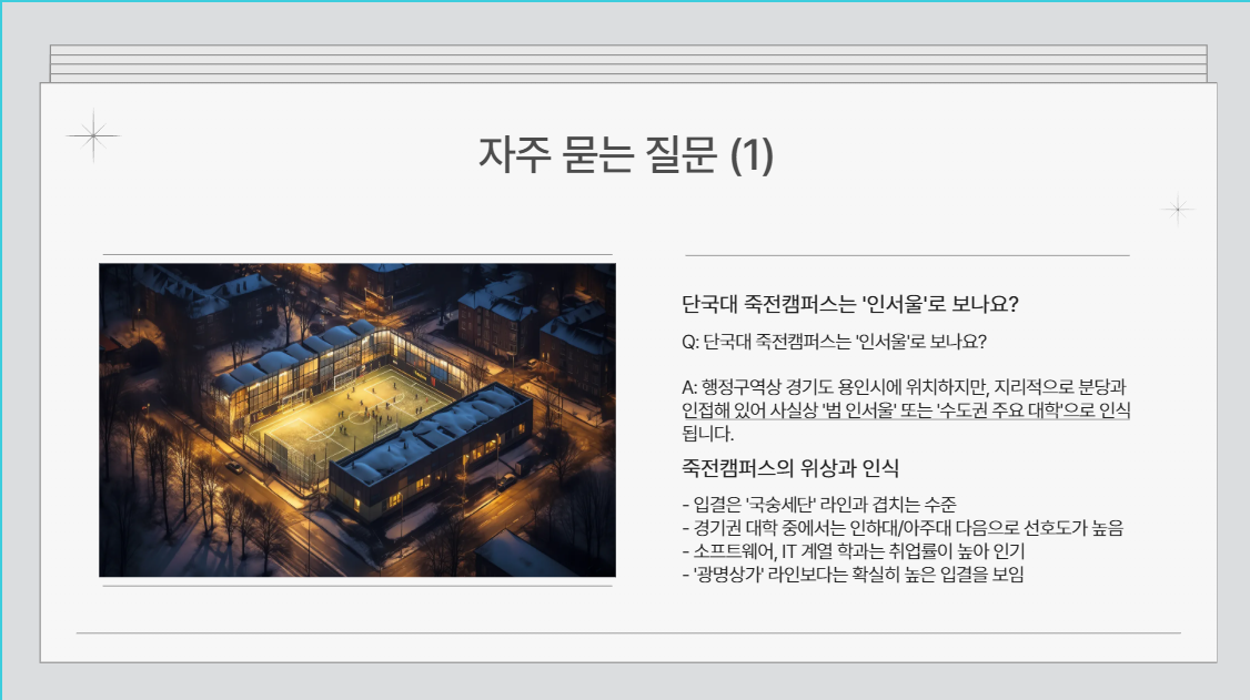 단국대는 죽전의 'IT/인서울 라이프'와 천안의 '메디컬/보건'이라는 확실한 투 트랙 전략을 가진 대학입니다. 내 점수가 애매하게 '국숭세' 라인에 걸쳐 있다면, 단국대 죽전의 특성화 학과를 노리거나, 천안의 보건 계열을 노리는 것이 취업과 미래를 위한 실리적인 선택이 될 수 있습니다.
