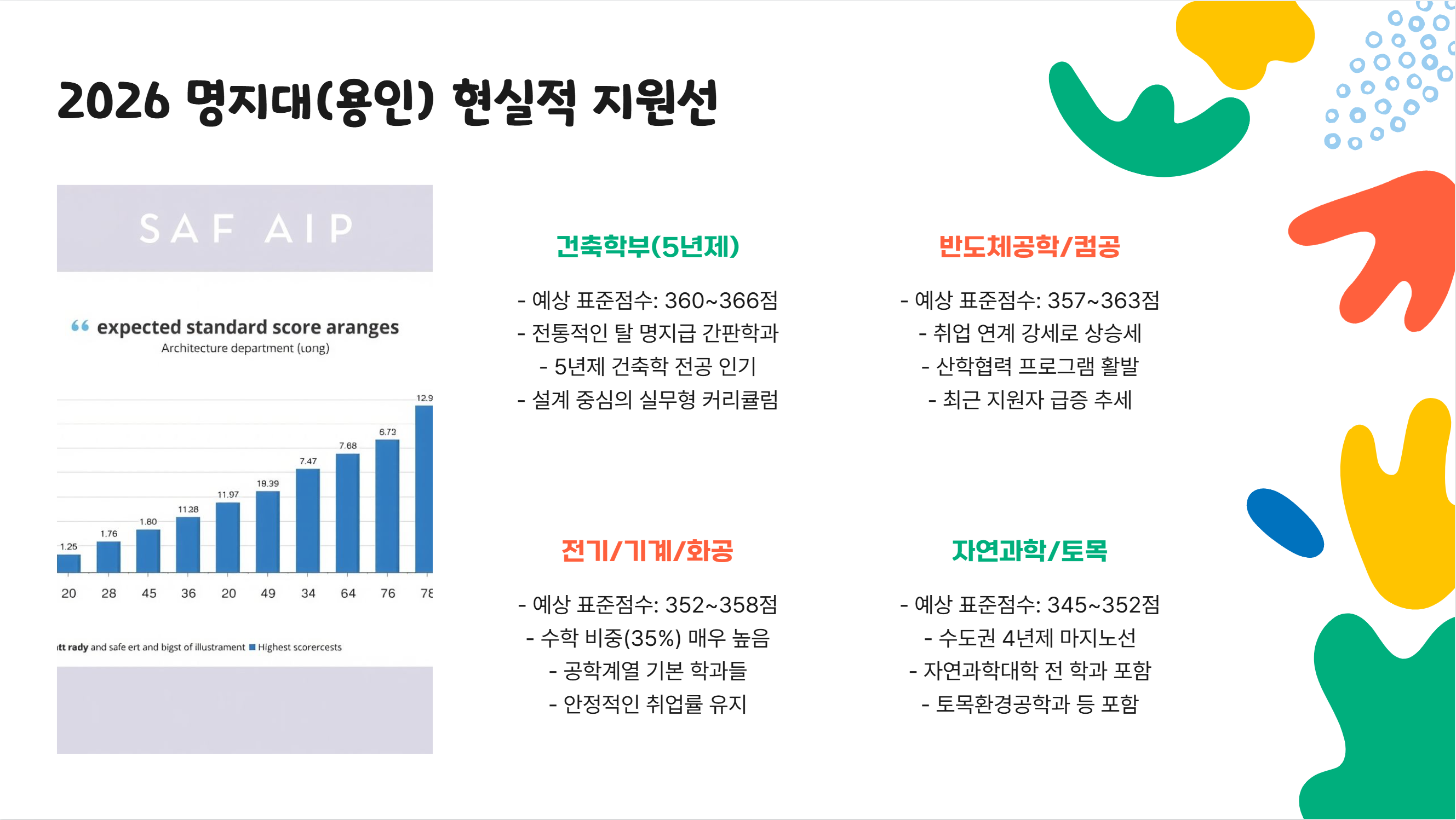 지금부터 가채점 데이터를 바탕으로 보정한 '2026 명지대 주요 학과 현실적 예상 합격선'을 공개합니다.