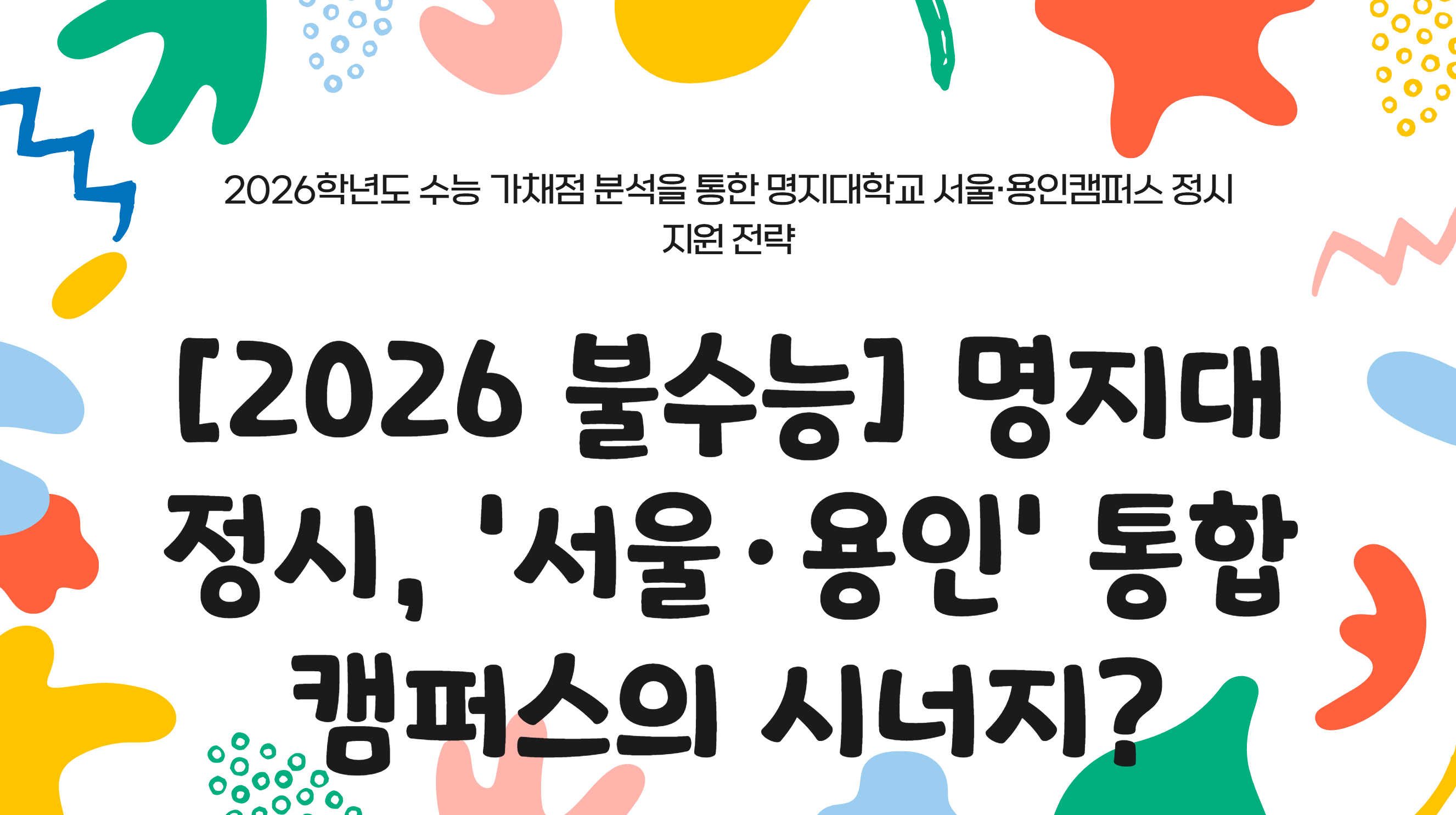 수험생 여러분, 정말 고생 많으셨습니다. 2026학년도 '불수능'의 파고 속에서 실속 있는 대학을 찾는 눈치 싸움이 치열합니다. 명지대학교는 서울(인문)과 용인(자연)으로 캠퍼스가 나뉘어 있지만, 최근 통합 논의와 함께 캠퍼스 간 전과 제도가 유연해지며 주목받고 있는 대학입니다.