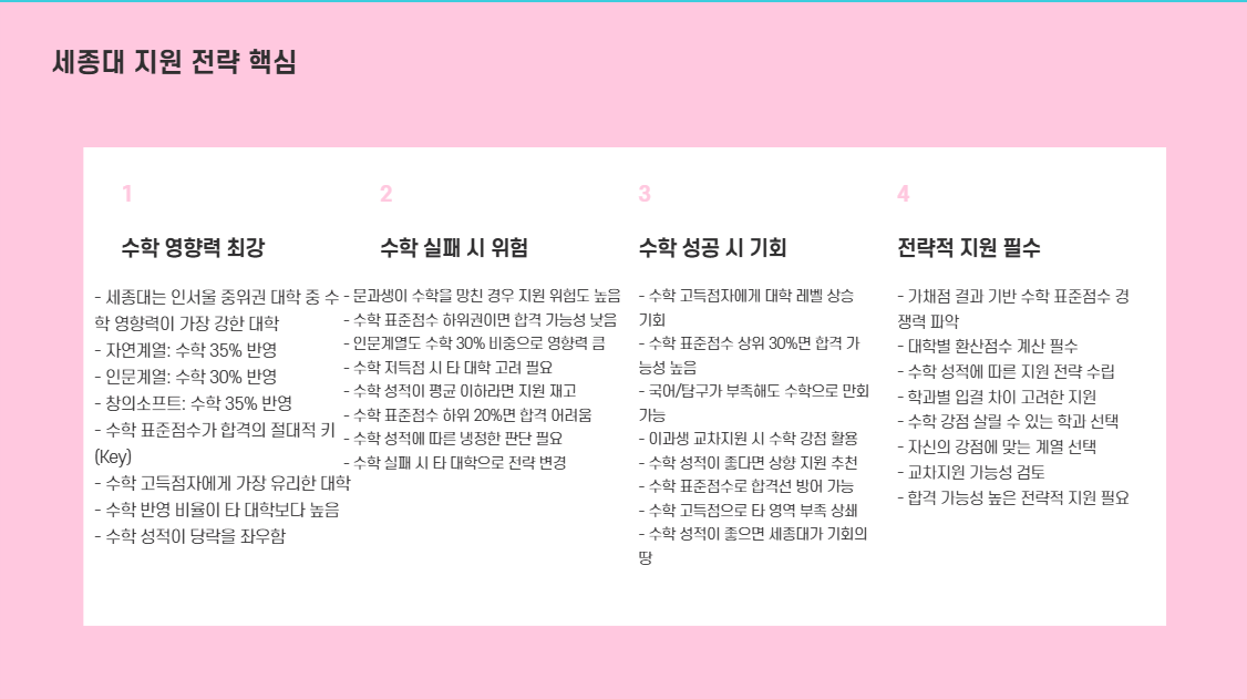 1. 세종대 정시의 핵심: '수학'이 당락을 가른다