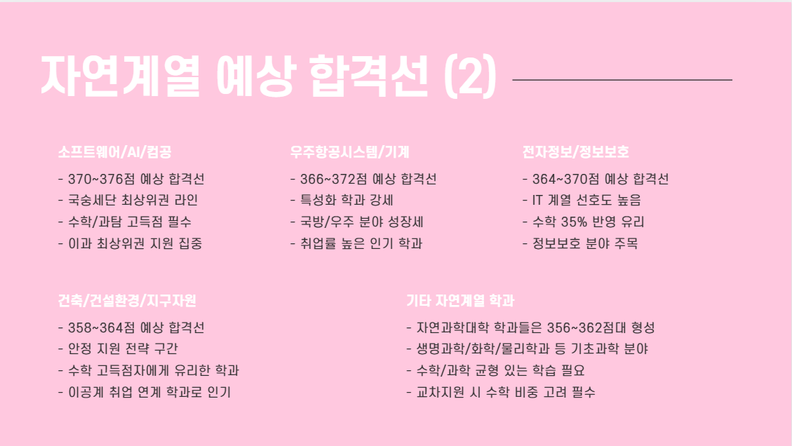 2. 자연계열 예상 합격선 (SW/우주항공 강세)