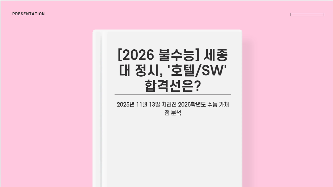 지금부터 가채점 데이터를 바탕으로 보정한 '2026 세종대 주요 학과 현실적 예상 합격선'을 공개합니다.