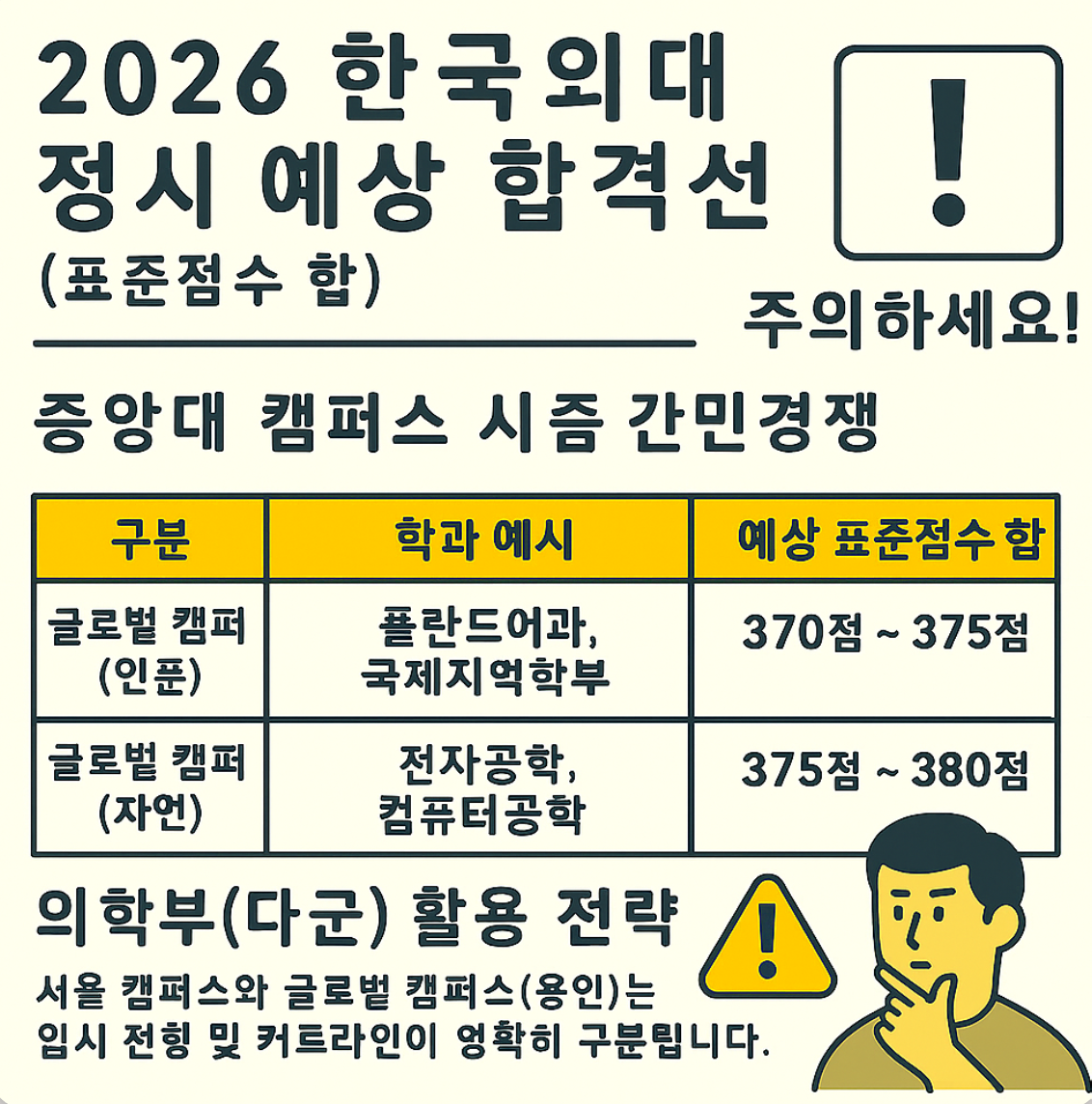 지원 유의: 서울 캠퍼스와 글로벌 캠퍼스 커트라인 차이 명확히 구분