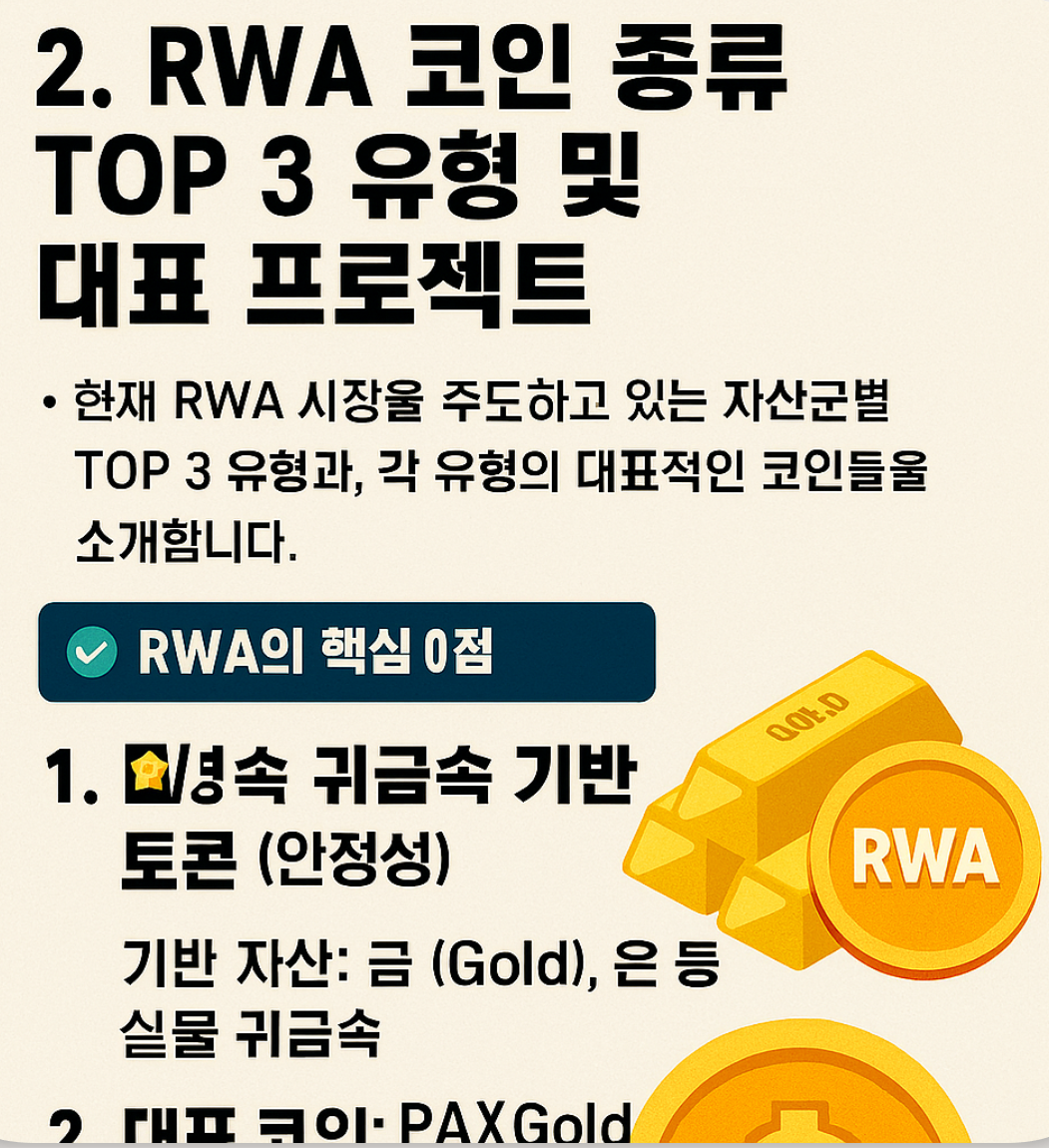 2. RWA 코인 종류 TOP 3 유형 및 대표 프로젝트