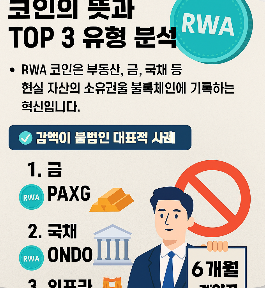 RWA 코인은 기존 금융 시장의 높은 진입 장벽과 낮은 유동성 문제를 해결하고, 동시에 암호화폐 시장에 현실적인 안정성과 수익원을 제공하며 폭발적인 성장을 이끌고 있습니다. 오늘은 RWA 코인의 핵심 유형과 현재 시장을 선도하는 TOP 3 유형별 대표 코인을 정확하게 알려드립니다.