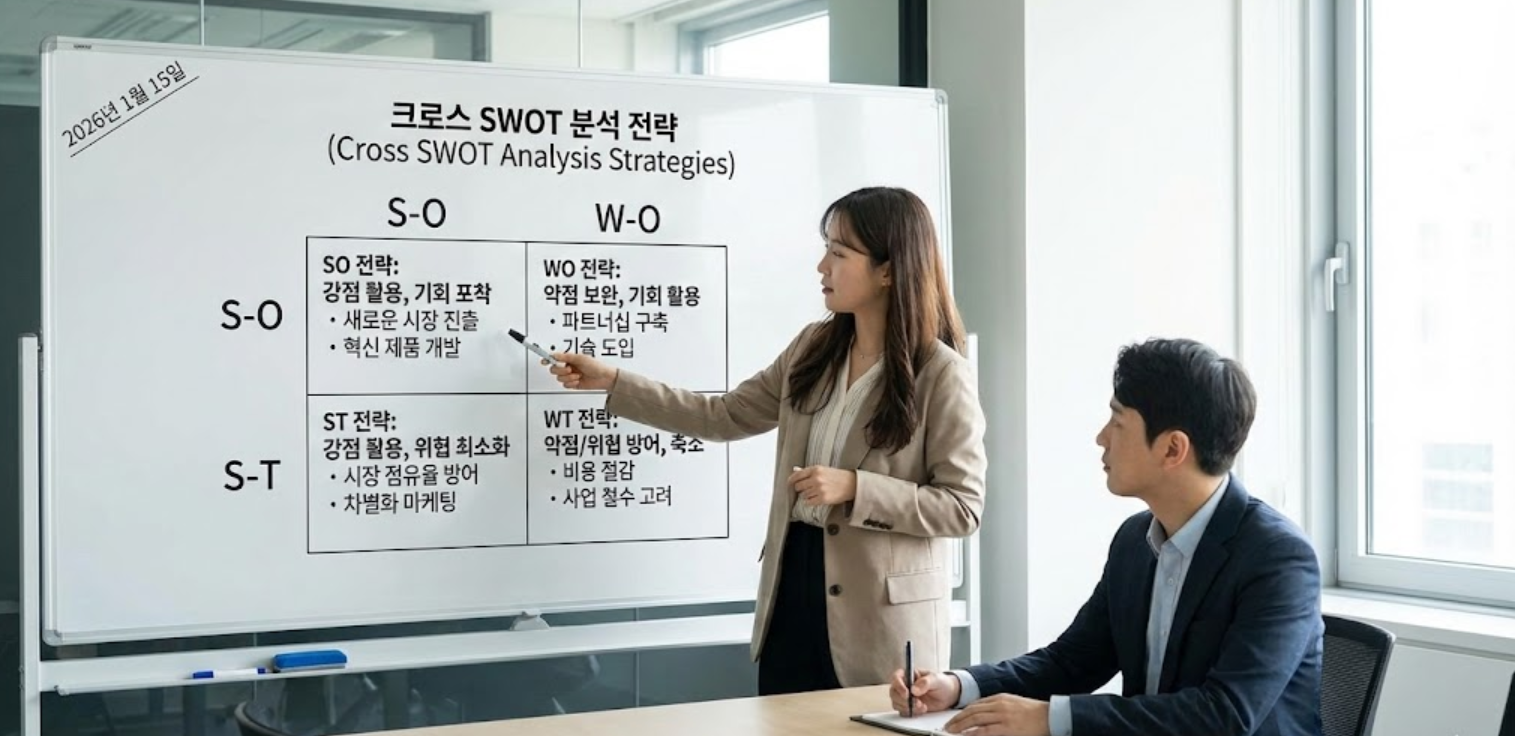 SWOT 분석 결과를 전략으로 연결하는 방법 (SO, WO, ST, WT 전략)